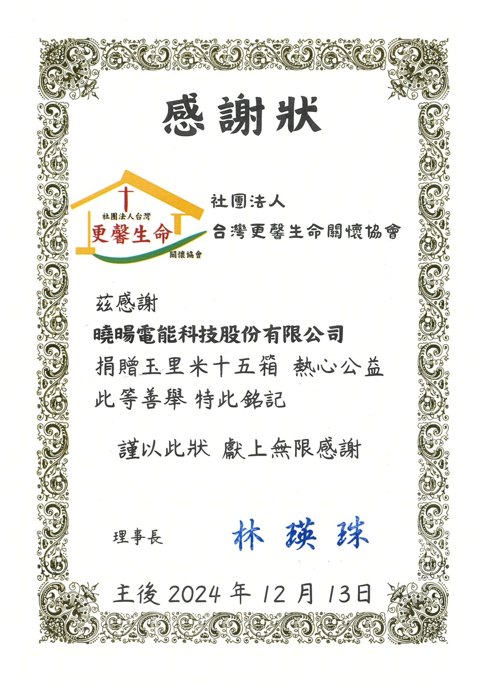 曉暘電能科技將持續投入環境友善與在地共好,願這份溫柔的力量,在社會中悄然生根,綻放希望的稻穗。